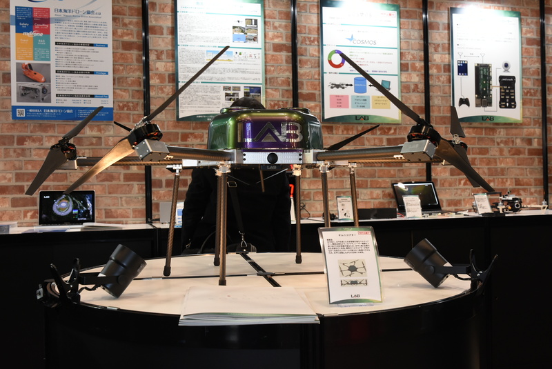 同社のブースではこれまでに同社が開発してきた製品群を一堂に展示。イームズラボはUAVだけでなくUGVやUSV、UUVといったさまざまな形の自律型無人機を開発している。さらにディープラーニングを用いた空間認識による衝突防止といったAIの開発にも長けていて、これらを組み合わせたドローン製品を、顧客のニーズに合わせて作り出している。ブースではそうしたドローンの数々を展示していた。