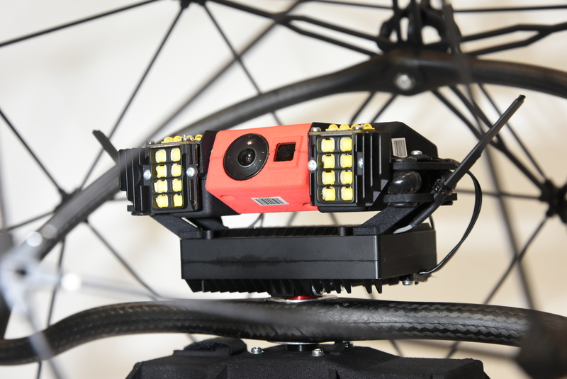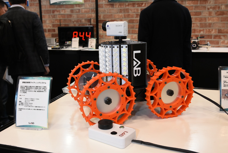 狭い場所で点検を行う際に照明を行う「狭域点検用ライティングシステム」。照明の配光や明るさを自在に変えることができる。