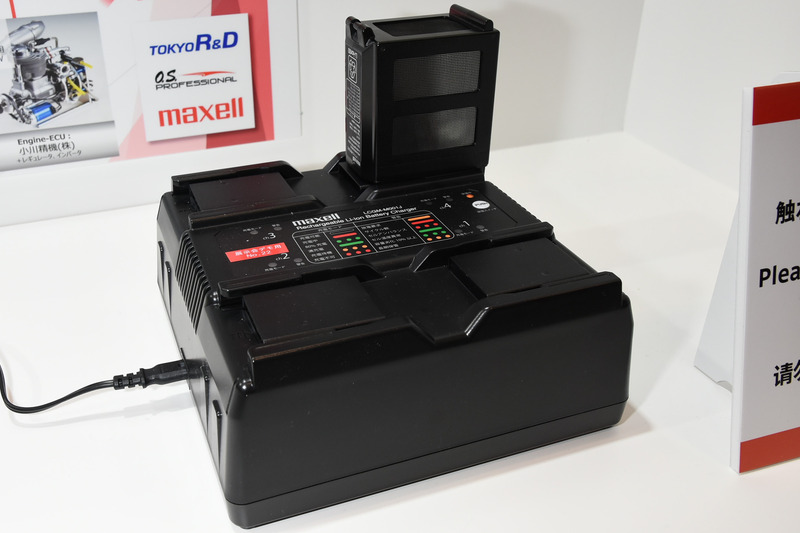 今回のJapan Droneの会場の中でひときわ大規模なブースとなっていたのがマクセルだ。これまでのJapan Droneには、ドローンメーカーのブースの中でサプライヤーとして出展してきたが、2017年に「日立マクセル」から「マクセル」に社名を変更したこともあり、そのお披露目も含めての大がかりな出展となった。