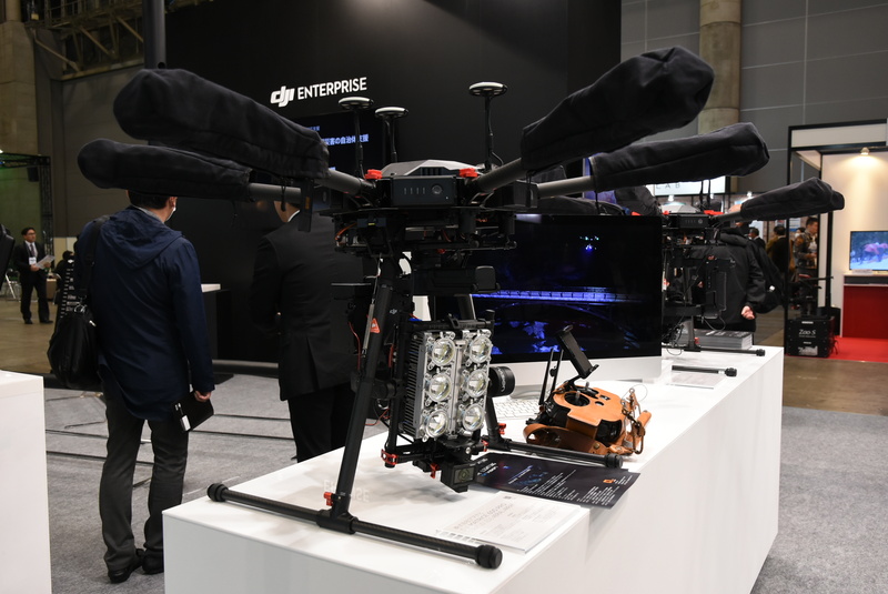 DJIの製品をベースにカスタマイズしたドローンの活用事例を披露するステージ。連日、大勢の来場者の関心を集めていた。