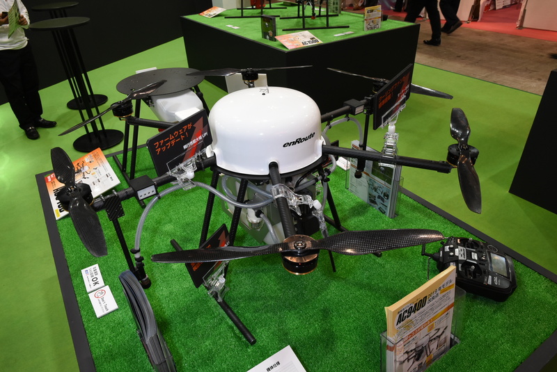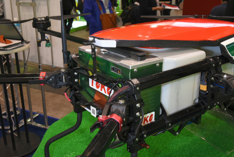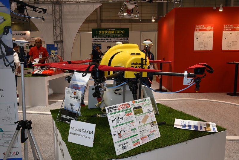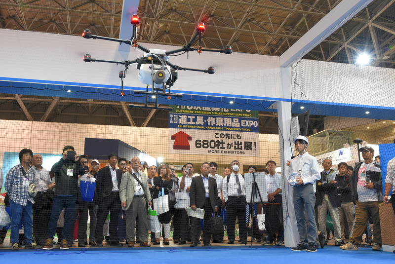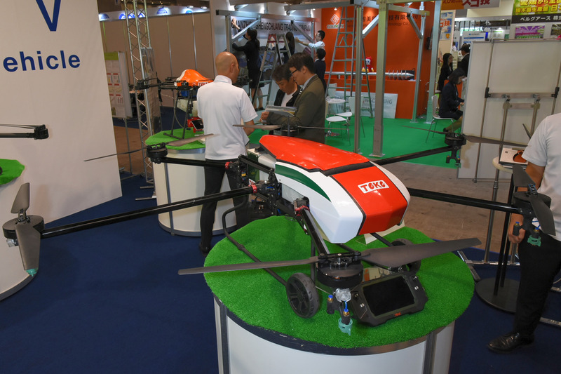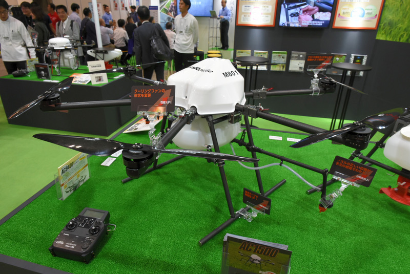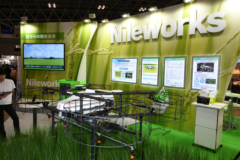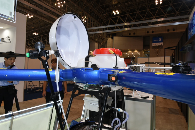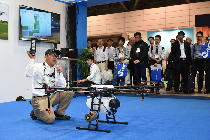 10月10日から12日の3日間、千葉県千葉市の幕張メッセで農業分野の総合展示会「第8回農業ワールド」が開催された。その中で、スマート農業や植物工場といった、最新の農業技術が展示される「第5回次世代農業EXPO(AGRINEXT)」では、農業分野における省力化や人材不足を補うドローン分野の出展が多く見られた。とくに今回は来年早々にも認められるといわれている農薬散布における自動航行を見込んで、ドローンメーカー各社は自動航行機能を搭載したモデルを中心に出展していた。