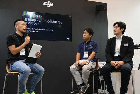 DJI製品を扱うスカイリンクジャパンでは、MG-1S AdvanceとMG-1P RTKの展示に加えて、ブース内をネットで区切ってドローンの飛行スペースを設け、実際にMG-1S Advanceによるフライトデモを繰り返し実施し、大勢の来場者の注目を集めていた。また、30年近く北海道旭川市近郊で農薬の空中散布を行ってきた、空撮ドローンパイロットしても知られる請川博一氏が講演。いち早くDJI AGRASを導入して蓄積してきた請川氏が話す同機の運用ノウハウに、多くの人が耳を傾けていた。また、スカイリンクジャパンではすでに北海道、秋田、岩手、山形にサービス拠点を置いており、今後も青森、福島、群馬、福井など全国各地に拡大していくという。