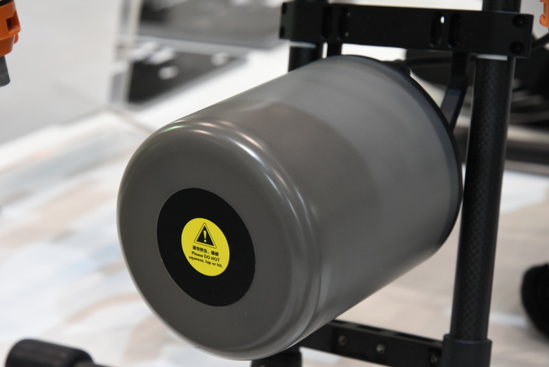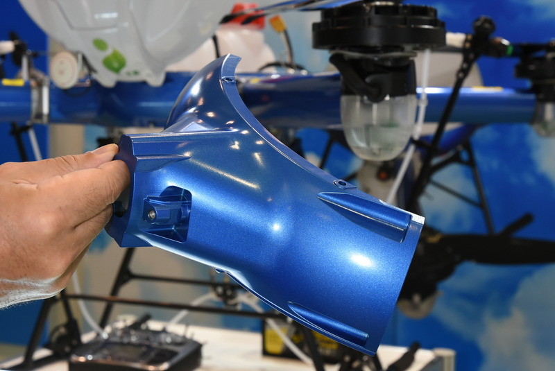また、農薬散布用ドローン「アグリフライヤー」は、8リットルの農薬タンクをフレーム内に抱え込むように搭載し、上部にはフェアリングも備えていて、デザイン性にも優れているのが特徴だ。あくまでも農業機械ということで、高強度、高耐久性を重視して作られており、フレームはすべてマグネシウム製となっている。