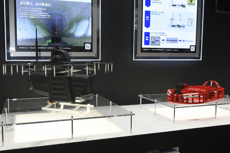 12月6日から8日の3日間、東京ビッグサイトでインフラ維持管理に関する展示会「社会インフラテック2018」が開催された。この展示会を主催するインフラメンテナンス国民会議は、社会インフラの老朽化が急速に進む中で、そのメンテナンスを産官学民で考えていく活動として国土交通省が中心となって2016年11月に設立された。2018年からは「ドローン×インフラメンテナンス連続セミナー」をスタートするなど、活動が盛んになっており、この社会インフラテックもその一環として開催されたものだ。今回は橋梁点検車といったハード、ロープワークのような技術、画像解析のようなソフトといった出展に混ざって、橋梁や下水管などの点検を行うドローンやそのデータを扱うソリューションが数多く展示されていた。