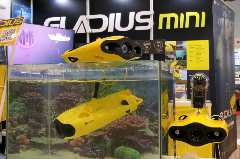 Japan Drone 2019では飛行型ドローンに加えて、複数の水中型ドローンの出展があり、この市場の盛り上がりを象徴していた。中国CHASING INNOVATION社の水中ドローン「GLADIUS」シリーズを扱うスペースワンは、最新の「GLADIUS mini」を展示。小型ながら最大深度100mを実現し、5つのスラスターを備えていることで最大45°の仰俯角を維持したまま潜航・浮上が可能となっている。またスペースワンではこのGLADIUS miniを使った水中ドローンスクール「GLADIUS CAMP」を開講し、水中事業の人材育成についても紹介していた。