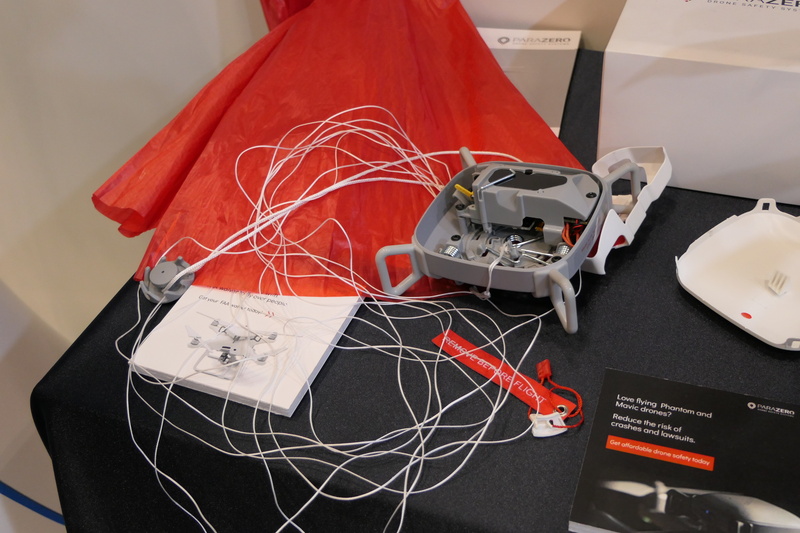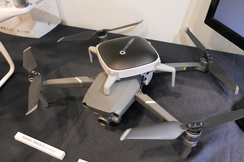 DJI製ドローンの販売を手掛けるTOHASEN(リサイクルポイント東京)では、イスラエルのParaZero社が開発したドローン用パラシュート「SafeAir Phantom」を展示。これはDJIのPantom4の上面に取り付けるだけで利用可能なパラシュートシステムで、機体と電気的に接続したりする必要がない、極めてシンプルな取り扱いが特徴だ。本機が機体の異常を検知すると自動的にパラシュートを展開。興味深いのは、展開時に本体を半回転させることでその足がプロペラの回転を強制的に停止させ、パラシュートの絡み合いや、地上で人に裂傷などの危害を与えることを防ぐことができるという。すでにTohasen Storeで販売を開始しており、価格は税込み49,800円。