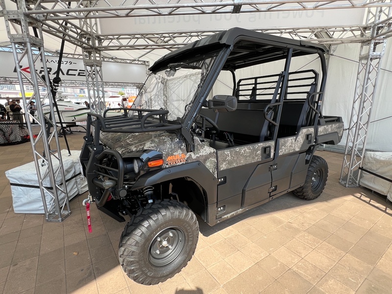 川崎重工業は「災害時のはたらく乗り物・体験」をコンセプトに、無人ヘリコプターやドクターヘリ、オフロード仕様のモビリティなどを展示。なかでも注目されたのが「K-RACER」という無人ヘリで、最大200kgの重量物を100km離れた場所まで1時間弱で輸送することができる。