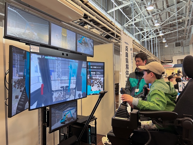 兵庫県解体工事業協会による重機シミュレータ「K-DIVE」の体験コーナーも大人気だった。実際のコックピットを模した本格的な装置で、金属スクラップをダンプに積み込む操作を大人も子どもも楽しんでいた。