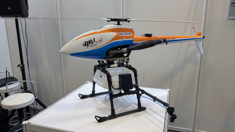 さらに、農業用のヘリコプター型ドローン「田助人(Tasketto)」も展示。ガソリンエンジンで駆動し、バッテリー型に比べて長時間飛行が可能になるだけでなく、充電作業の手間も省ける。機体重量は7.5kgと軽量で、一人で運搬しやすいのも大きな特徴だ。なお、最大8Lの農薬を積載できる。田助人の販売はキリックスグループを通じて行われ、すでに販売を開始している。