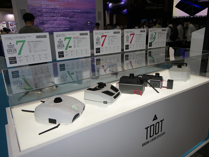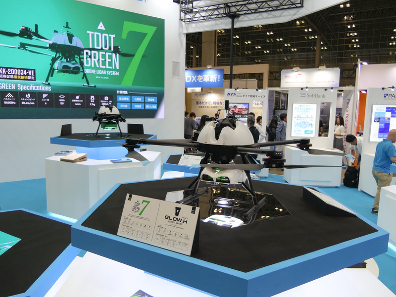 測量用レーザースキャナと、それを搭載するための中型ドローンを、独自に開発、製造、販売するアミューズワンセルフは、CSPI-EXPO 2025の会場の中でもひときわ大きなブースを出展。レーザースキャナは2024年に発表した「TDOT 7」シリーズを展示する中で、新たにラインナップに追加した「TDOT 7 GREEN LITE」を披露。また、ドローンの製品は、中型クワッドコプター「GLOW」シリーズの第二世代モデルにあたる「GLOW.L Rev.2.0」「GLOW.H Rev.2.0」を展示していた。