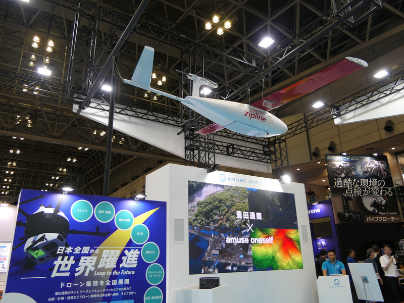 CSPI-EXPOの直前に豊田通商によるアミューズワンセルフへの出資が発表されたこともあり、ブース内には豊田通商のドローン事業子会社であるそらいいなが運航するZiplineの固定翼ドローンが展示されていたほか、豊田通商のスタッフがブース内で両社の提携やアミューズワンセルフの製品について説明にあたっていた。