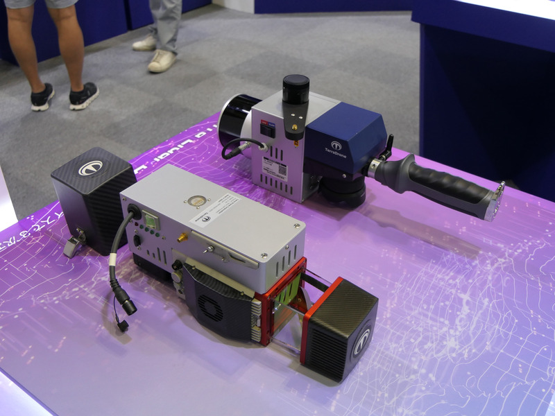 「国際建設・測量展」ということもあり、UAV搭載用とハンドヘルド型スキャナーを中心に展示していたテラドローン。UAV搭載用ではRIEGL製のスキャナーを採用したTerra Lidar Xと、Hesai製のスキャナーを使ったTerra Lidar Oneを展示。いずれもDJIのMatrice 350 RTKや石川エナジーリサーチのビルドフライヤーに搭載できる。