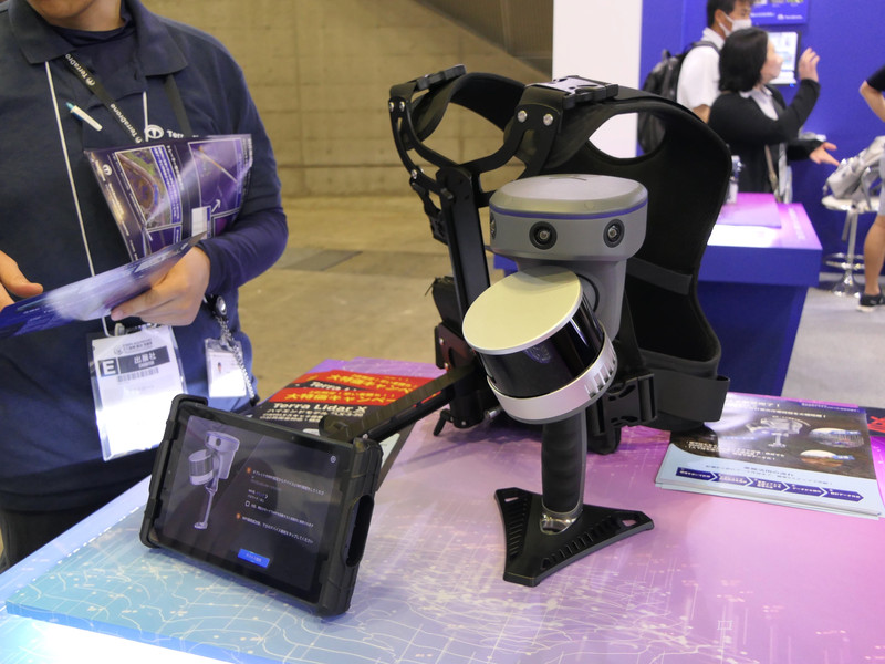 今回のブースで展示していたTerra SLAM RTKは、毎秒32万点のスキャンレートのレーザースキャナーと3つの超広角カメラを備えたモデルで、専用タブレットとの組み合わせにより、現場でデータ化ができる。