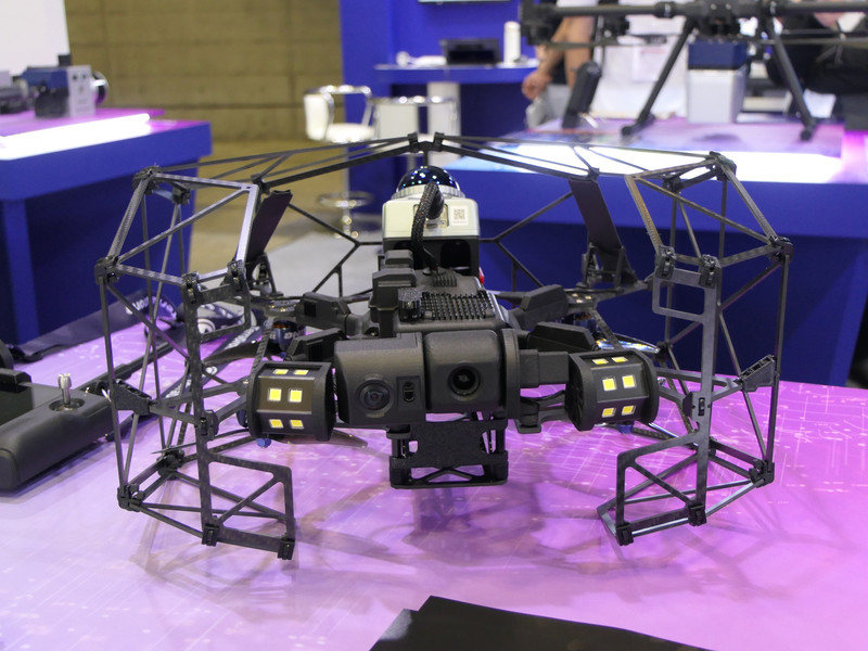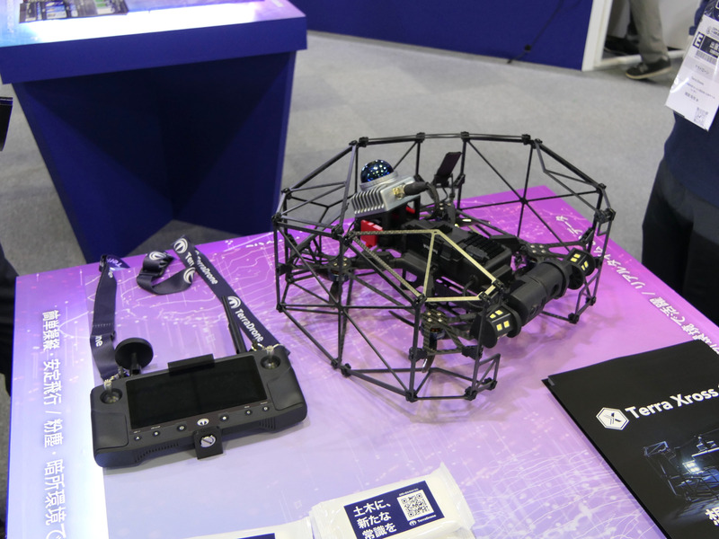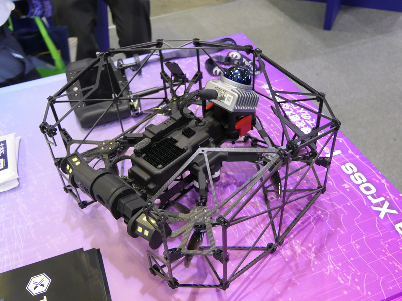 こうした測量・計測機器に加えてテラドローンのブースでは、今年1月に同社が発表した屋内目視点検ドローンTerra Xross 1を展示していた。テラドローンはすでに超音波探傷検査用ドローンであるUTドローンを開発し、海外を中心に船舶やプラントの点検用途で同社のサービスとして提供を行っている。Terra Xross 1は同社がこうした点検用途に対して本格的に事業を展開するモデルであり、同社によるとテラドローンの点検分野における製品販売は国内外初だとしている。