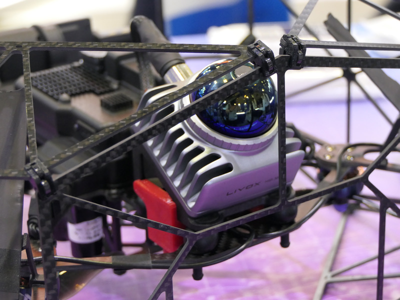 Terra Xross 1は約35cmスクエア、1800gのクワッドコプター。機体の周囲をカーボン製のケージが取り囲み、障害物や点検対象物にぶつかってもすぐには墜落しないという、近年の狭所点検用ドローンにならったつくりとなっている。