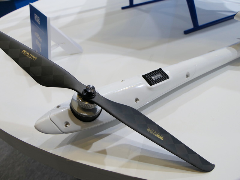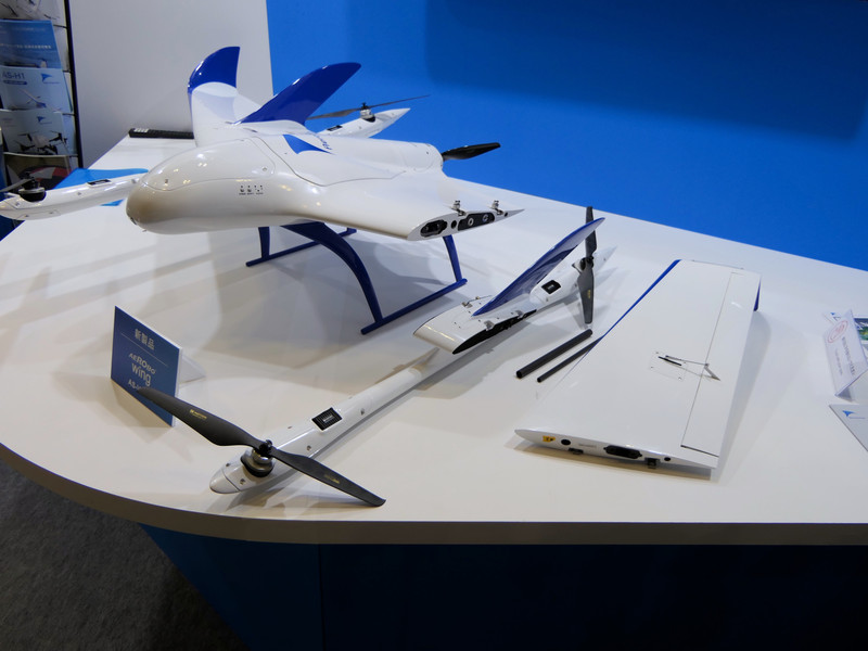 エアロボウイングAS-VT02Kは、翼長2.1mの全翼式VTOL型ドローン。4つの離着陸用ローターと推進用のローターをひとつ備え、最高速度100km/h、最大59分という飛行が可能となっている。ペイロードは1.6kgで、胴体の内部に貨物を搭載できるほか、胴体下面に静止画、動画のカメラを搭載することが可能。