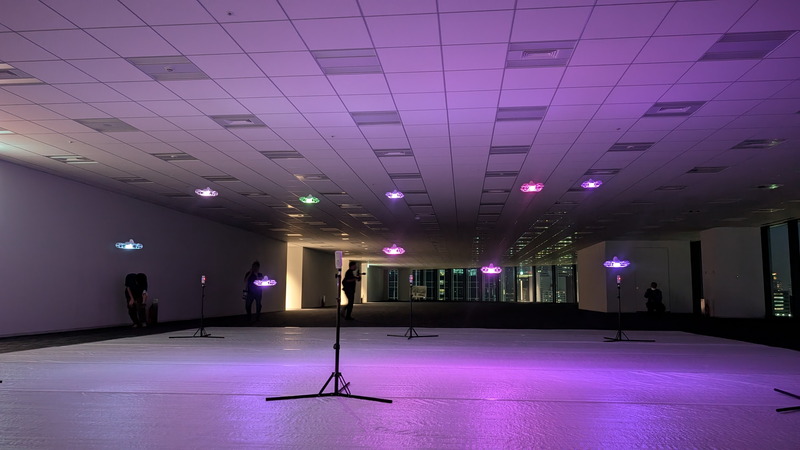 観覧会場はTAKANAWA GATEWAY CITY内の「THE LINKPILLAR 1 SOUTH」10階に設けられ、離着陸場の北側に位置していた。今回は19時開始のショーを観覧し、それには30組78名の観客が来場した。室内に設けられた会場の窓からは山手線や高層ビル群を見下ろせる絶好のロケーションとなっていた。