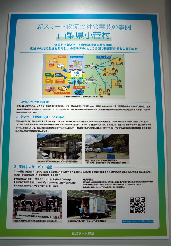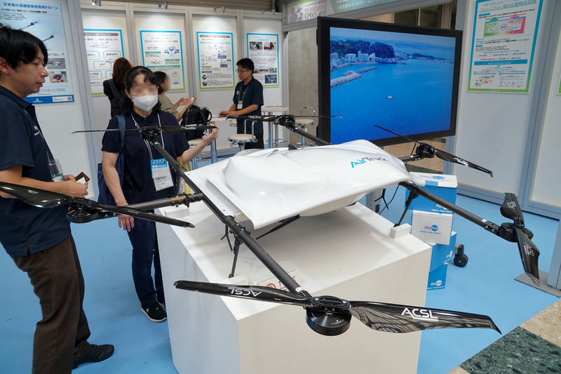 国際物流総合展では、協議会が取り組みを行った山梨県小菅村や大分県宇佐市での実証実験の成果をパネル展示で紹介。さらに、実験で使用されたACSL製の物流用ドローン「AirTruck」の機体展示も行われ、来場者の関心を集めた。