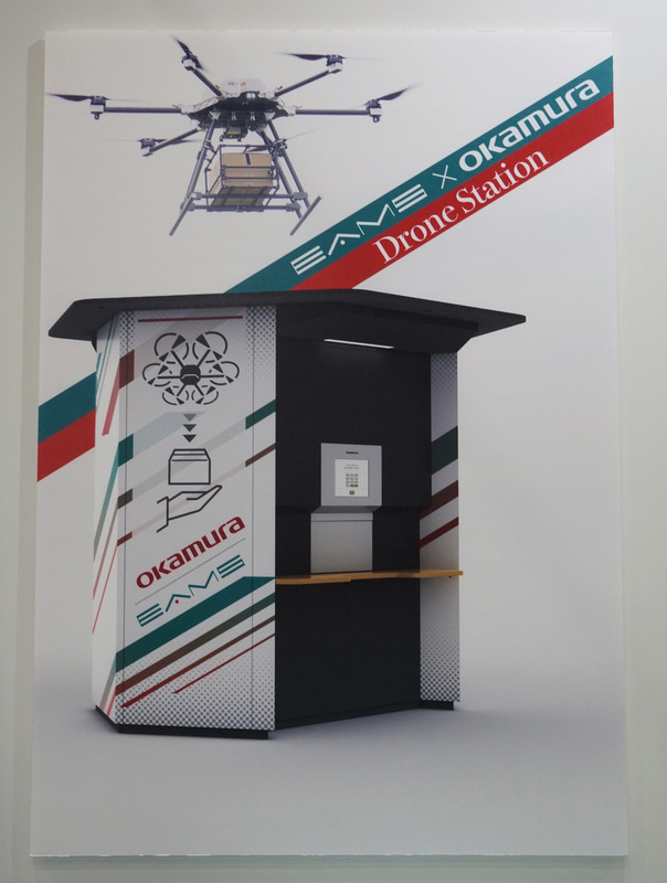 また、開発中のスマート物流設備「ドローンステーション」の概要が発表された。物流拠点からステーションまでドローンで荷物を空輸し、屋上に着陸後、荷物を建物内部まで自動搬送する仕組みを備える。利用者は暗証番号を入力することで下部の開口部から荷物を受け取ることができる。オフィス家具メーカーのオカムラと共同開発が進められており、今後の実証実験を経て実用化が期待される。