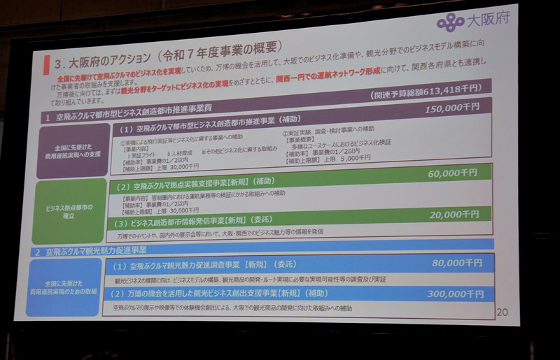 さらに、今年度は「観光商品の開発」「ルート実現に必要な実現可能性調査」「商用運航に向けた実証」などをテーマにした事業予算を組んでおり、来年度にはバーティポート設置に関する新規予算も計画しているという。林氏は「大阪・関西万博で得られたレガシーを受け継ぎ、空飛ぶクルマをはじめとする先端技術の実装化、産業化に挑戦したい。“空飛ぶクルマのビジネスなら大阪”と言われるよう取り組んでいく」と力を込めた。