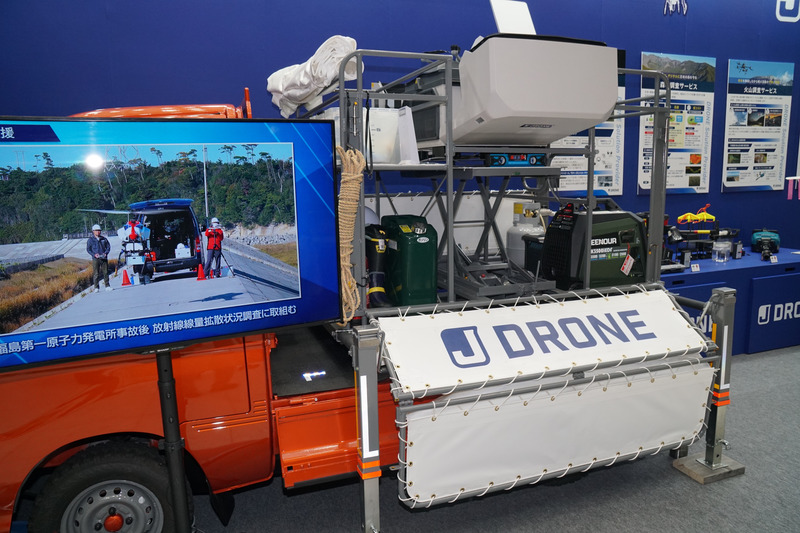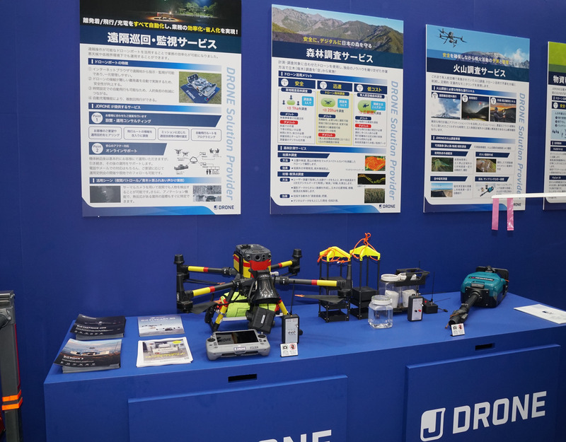 なお、JDRONEブースでは同ステーションのほか、防災対応の無人ヘリコプターや関連ソリューションもあわせて展示された。