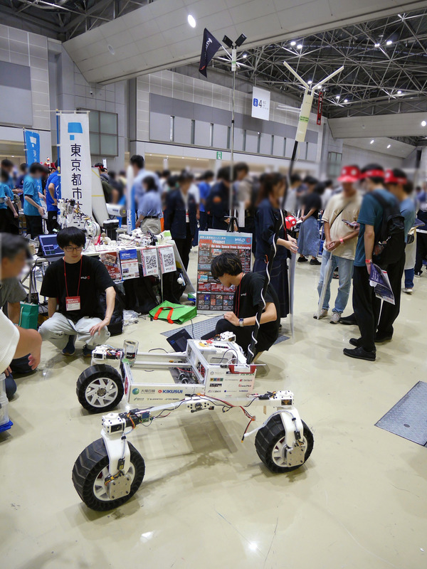 日米学生が共同で火星探査ローバーを製作している団体のKARURAプロジェクトは、火星探査を想定した機能を有するローバーを出展。2025年に開催された世界大会決勝で実際に使用されたものだそうだ。