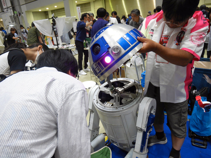 ドロイド・ビルダーズ・ジャパンのスターウォーズレプリカドロイド「R2-D2」は会場中を歩き回っていた。大人から子どもまで大人気。