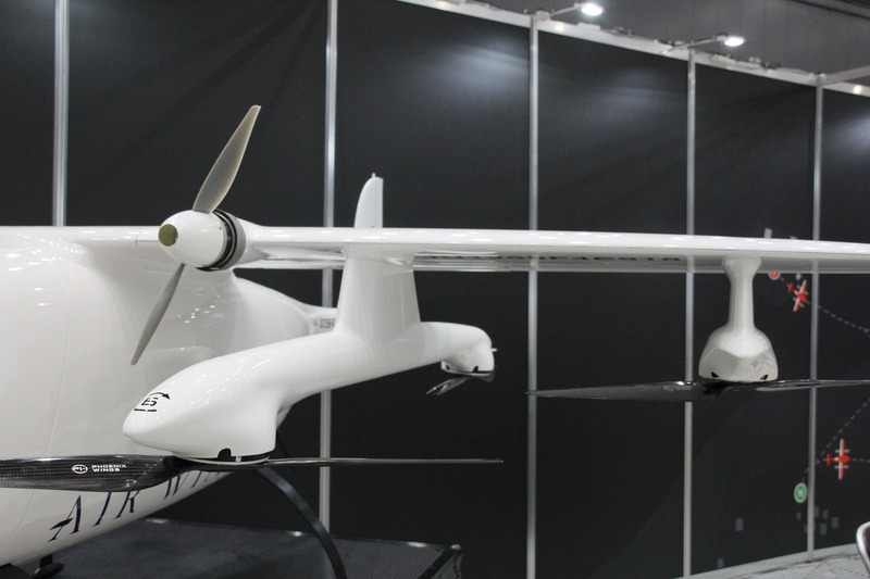 展示会では、ドイツのPhoenix Wings社が開発するVTOL機が展示された。翼幅は2.98m、最大離陸重量は52kg、ペイロードは最大15kg(航続距離60km)まで対応する。