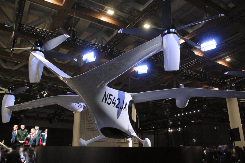 LEXUSのブースに展示されていた「Joby S4」のモックアップ。TOYOTAのロゴが入る。