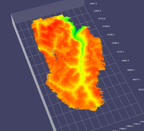 本現場でのレーザー計測では、伐採せずに樹木下の地表面の情報を得られただけではなく、複数ある谷の計測ができ、境界確定や効率的な造成計画の策定にも役立てる。