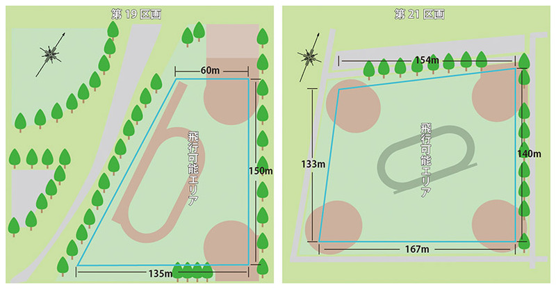 図2:JUIDA・大宮試験飛行場の見取り図、左が1区画目で右が2区画目