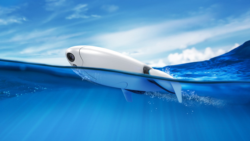 インテリジェント水上ロボット「PowerDolphin」は、最大 215 度まで撮影可能な「ダブルジョイント式可動カメラ」を搭載。水上では、スリル満点のウォータースポーツや、水中では壮大な海底の景色をパノラマで撮影することが可能である。さらに、ベイトコンテナが装備されており、カメラからの映像を見ながら思った場所に餌を投入することができるのが斬新なつりを可能にする。