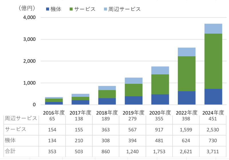 2017年度は前年度比42%増の503億円、2024年度には3711億円に拡大