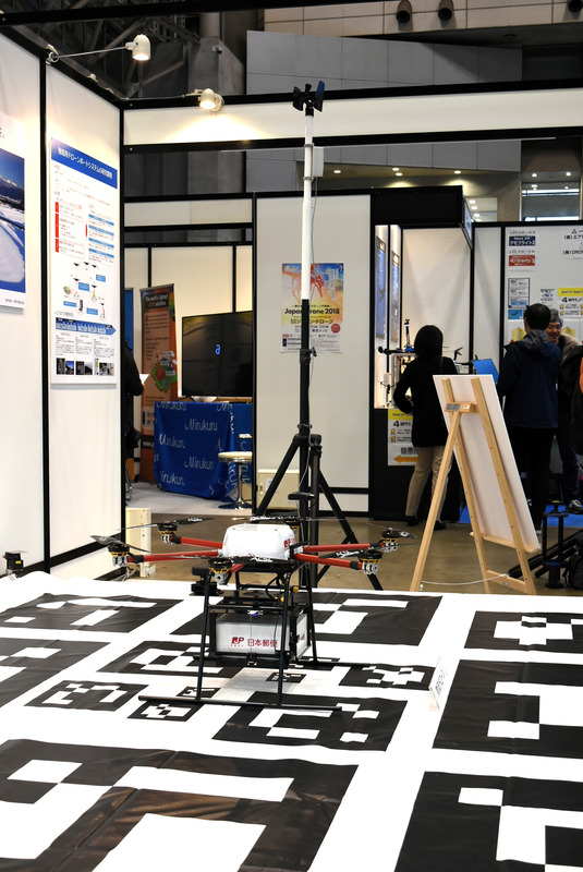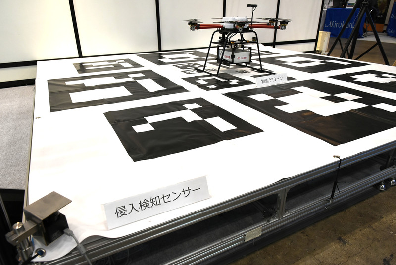 今回のドローンポート登録制度の要素のひとつとなるのが、実際にドローンが離発着するドローンポートだ。このシステムはブルーイノベーションが開発を行っていて、伊那市で行われた実証実験でも使用されている。GNSS下のフライトでも位置の誤差は約数m~十数m出るため、自動航行で正確にドローンポートに離発着することができない。そこで、ドローンポートにパターンを描き、それをドローンのカメラで捉えて認識し、正確にポート上に着陸できるようにしているのが特徴だ。また、人の侵入を検知する機能や、風況を監視する装置も設けて安全性を確保している。