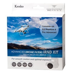 カメラ用フィルターで長年培ったKenkoの光学技術を活かして開発したIRNDフィルター4枚(IRND4、 IRND8、 IRND16、 IRND32)のセットで、 撮影時の明るさに応じて最適な濃度を選んで使うことができる。ドローンで最もシェアの高いDJI Phantom4 Pro / Advanced 専用設計になっている。