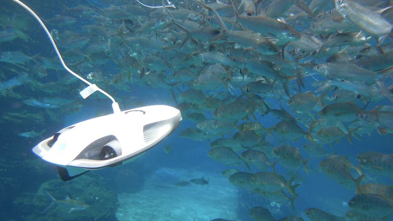 本イベントは、来場者がまるで大水槽の魚と一緒に泳いでいる気分を体験できるイベントで、ソフトバンクC&Sが取り扱う水中ドローン「PowerRay」(PowerVision Robot Inc.製)を活用して撮影した須磨海浜水族園大水槽内の映像を、水槽上部の壁面に投影する。「PowerRay」によって、普段物陰に隠れていて見つけにくい生物や、水槽内から見た来場者の姿を、水槽内にいる魚の視点で見ることができる。「PowerRay」は二つのLEDライトを搭載しているほか、フルHDの高画質な映像の撮影が可能である。