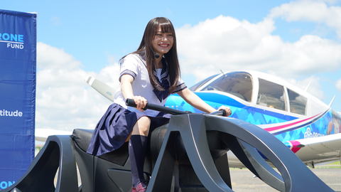 Drone Fundが新たに出資する自律制御システム研究所によるデモフライトやエアリアルラボインダストリーズ(ALI)が開発したホバーバイク「Speeder-One」の実物大模型が紹介された。Drone Fund公式キャラクターとして発表された美空かなたのイラストがラッピングされた、千葉氏所有のセスナ機もお披露目された。