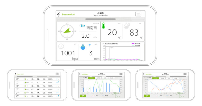 2018年8月16日、かもめやは、リアルタイム性重視の次世代気象観測システム(開発コードネーム:KAZAMIDORI:カザミドリ)を全国に先がけ、瀬戸内海エリアで運用開始したことを発表した。これは、離島や山間部における無人航空機(ドローン)運用の規制緩和を見越して、目視外飛行を行う際に必要となる飛行ルート上の気象状況の把握に利用するものである。