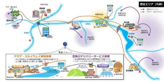 同プロジェクトは、「空飛ぶデリバリーサービス構築事業」、「INAドローンアクア・スカイウェイ事業」という2つの事業で構成している。