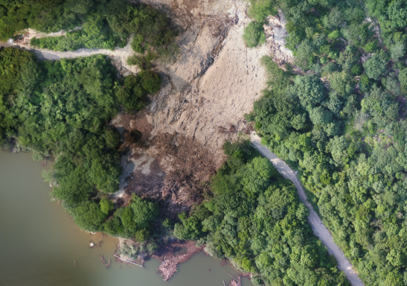 ・対策工事を迅速に進めるための地形データ、 図面を計測後1日で提供
