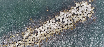 ジオデザインでは、数々の港湾現場において消波ブロックの変位計測を行っている。今回、消波ブロックの中でも海岸線より少し離れた位置に設置する離岸堤において、AEROBOマーカーを使った高精度測位と高精細な空撮画像を組み合わせAEROBOクラウドでの高速解析をすることで、これまで時間がかかっていた3次元モデル作成の一連の業務の流れを短縮できた。詳細は、同社HPの「導入事例紹介」を参照。(http://www.aerosense.co.jp/case-0027)