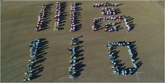 川俣高等学校創立110周年を記念したドローンによる人文字空撮