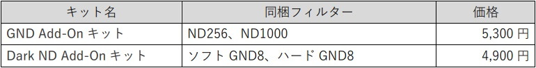 偏光濃度の濃い ND をフィルターと、ハーフ ND フィルターのアドオンキットである。