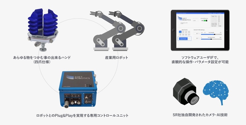 ソフト・ロボティクスは、2013年にハーバード大学の研究員らを中心に創業された米国発のベンチャー企業である。同社の『SuperPick』は、独自開発された最新ビジョン技術やアルゴリズム、特許を取得している素材などのテクノロジーを応用し、非定型な個体を人間の手のように高い精度とスピードでピッキングすることができる画期的なロボティックピッキングソリューションである。米国では、食品製造業や自動車部品工場などで既に導入、活用されている。