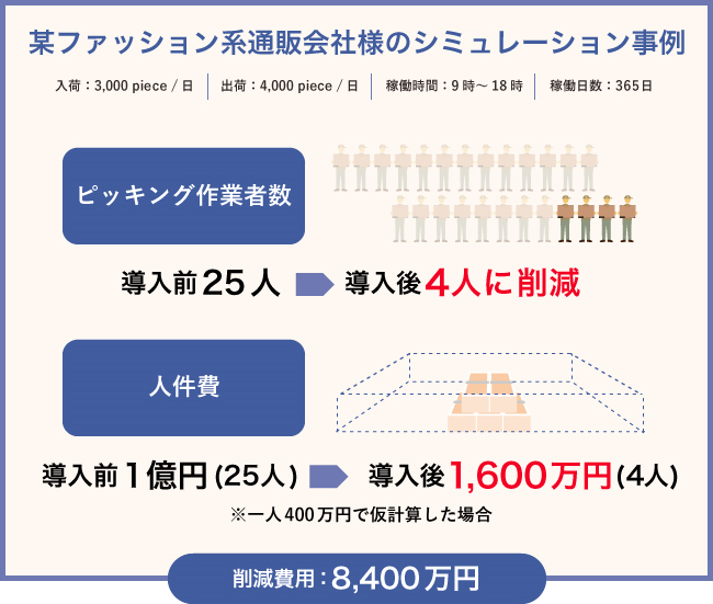 また、ピッキング効率は3倍~5倍となり、出荷数量・生産性の向上に大きく貢献している。