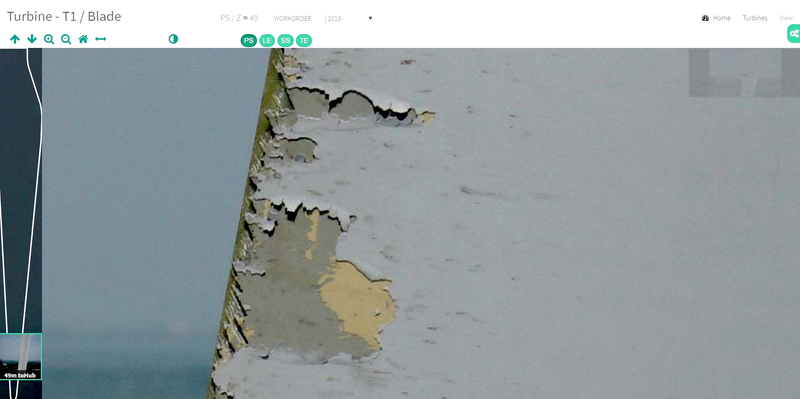 自律飛行が可能なため、ブレることなく近距離で撮影ができ、平均0.4mm/pixの高画質なレポートを得ることができる。撮影した画像は、専用のソフトウェアを介してクラウド上で管理ができ、AIによる画像処理によって、 表面の損傷度合いを分類することができる。また、ソフトウェア上で撮影した画像を拡大でき、ミリ単位の傷を見ることも可能だ。