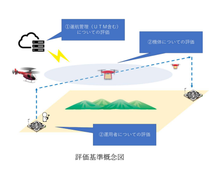 2019年3月15日、一般社団法人日本 UAS 産業振興協議会(以下 JUIDA)、一般 社団法人日本産業用無人航空機工業会(以下 JUAV)及び一般財団法人総 合研究奨励会日本無人機運行管理コンソーシアム(以下 JUTM)は、目視外飛行の安全運航を実現するための教育・機体・運航管理の各評価基準を発表した。
