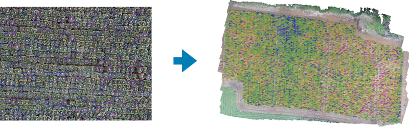 解析オプションでは、オルソモザイクやDSMの生成の他に、画像処理・AI解析技術を用いた雑草解析や葉物野菜の生育診断、収量計算などが利用できるようになった。