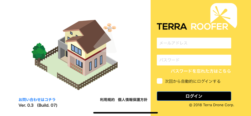 2019年4月17日、テラドローンは、昨年9月にリリースとなった屋根点検ソリューション「Terra Roofer」(テラルーファー)に16機能以上を新たに追加し、大幅なバージョンアップにて提供を開始した。Terra Rooferは一戸建・集合住宅などの建造物の屋根をドローンを用いて自動で撮影するためのアプリケーションである。より身近に、また安全に屋根点検業務を実施することができる。また、一事故あたりの対人・対物補償が最大1億円のドローン保険も付帯している。