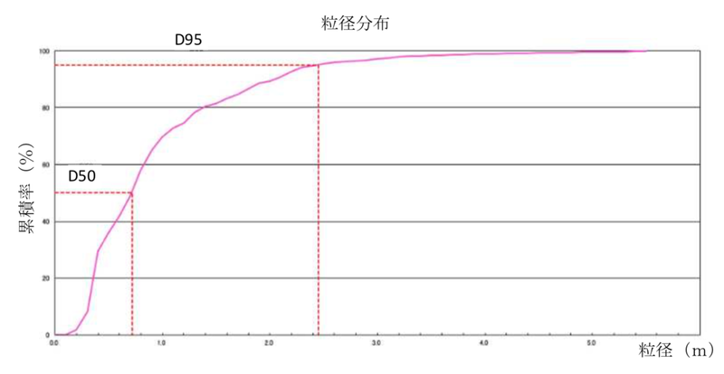 礫径分布グラフ・粒径分布グラフ・石礫抽出結果レポートなどを自動生成する。印刷、CSVデータでのダウンロードも可能。